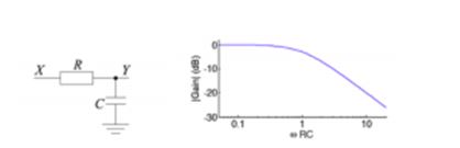 یک مدار RC و پاسخ فرکانسی آن حال فرض کنید به ابتدای سطح مقطع یک لوله جابهجایی با دامنهی یکسان وارد می نماییم و فرکانس آن را بالا میبریم و دامنهی جابهجایی را در سر دیگر آن اندازه گیری می نماییم. حال طبق نکات بالا نمودار پاسخ فرکانسی را رسم می نماییم.