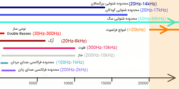 مثال هایی از بازه فرکانسی صداهای که می شنویم. کاربردهای التراسونیک